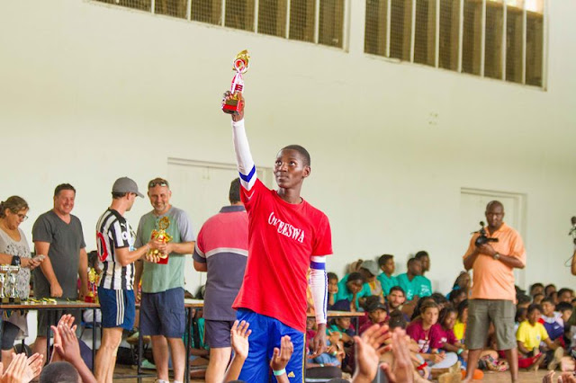 Ndajiri Lonyori kutoka shule ya sekondari Orkeeswa akipokea kombe la ushindi wa mchezo wa mpira wa kikapu wa wasichana chini ya miaka 19 wakati wa wikiendi ya michezo kwa shule za kimataifa iliyofanyika mkoani Moshi wikiendi hii. Shule ya sekondary Orkeeswa kutoka mkoani Arusha iliibuka kidedea baada ya kuchota makombe 15 katika michezo mbalimbali iliyoshiriki.