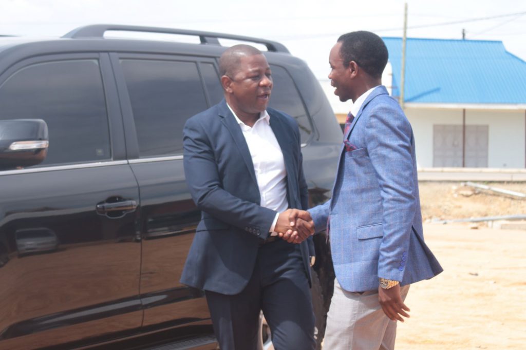 Mkuu wa Wilaya ya Dodoma, Patrobas Katambi,akimpokea Naibu waziri wa Mifugo na Uvuvi Mhe. Abdallah Ulega,aliyekuwa mgeni rasmi katika kukabidhi chanjo ya mdondo kwa Chama cha Ushirika wa Wafugaji Kuku Bora Jiji la Dodoma (CHAWAKUBODO).