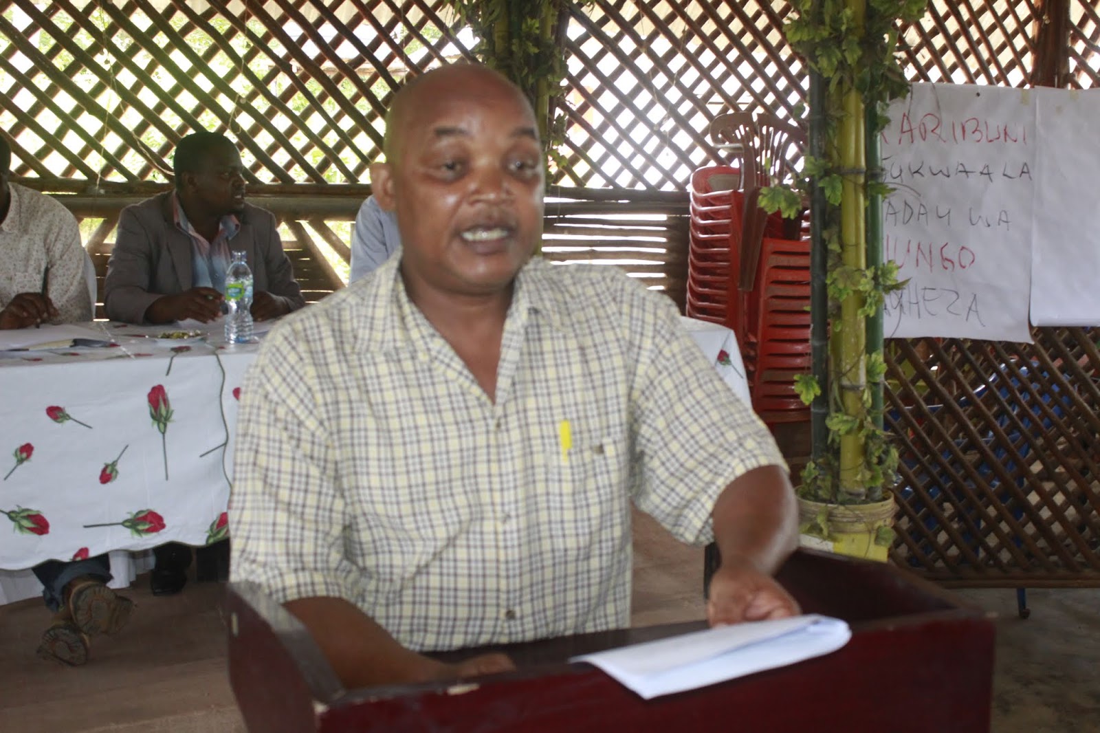 KAIMU Mkuu wa wilaya ya Muheza Ally Kijazi ambaye pia ni Afisa Tarafa ya Bwembwera wilayani humo akizungumza mara baada ya kufungua Jukwaa hilo la viungo