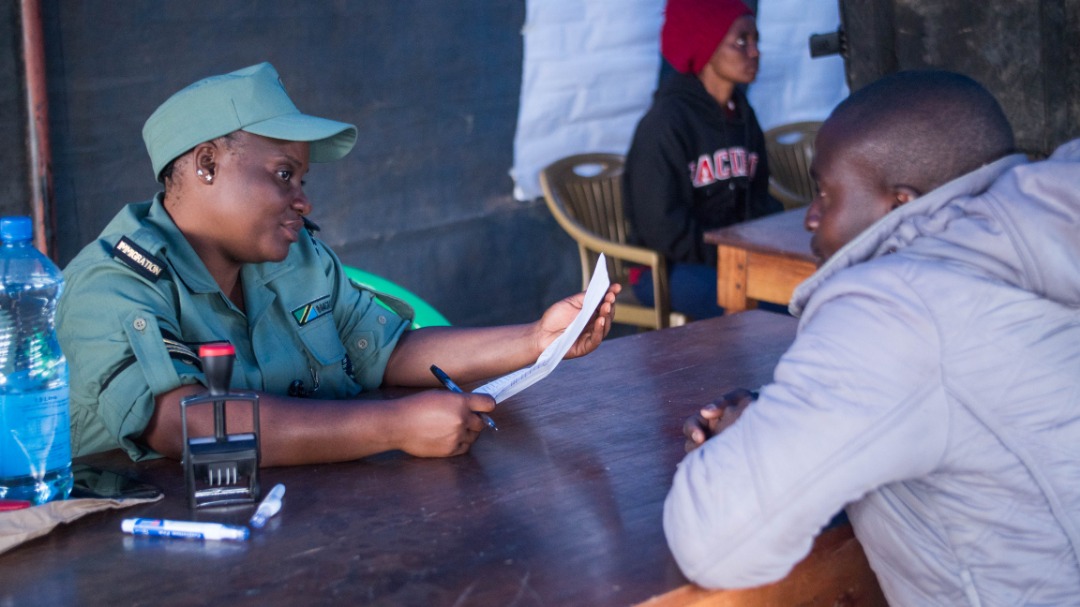 Afisa uhamiaji akihudumia Mwananchi katika Kampeni ya Mnada kwa Mnada uliofanyika Mji mdogo wa Makambako.