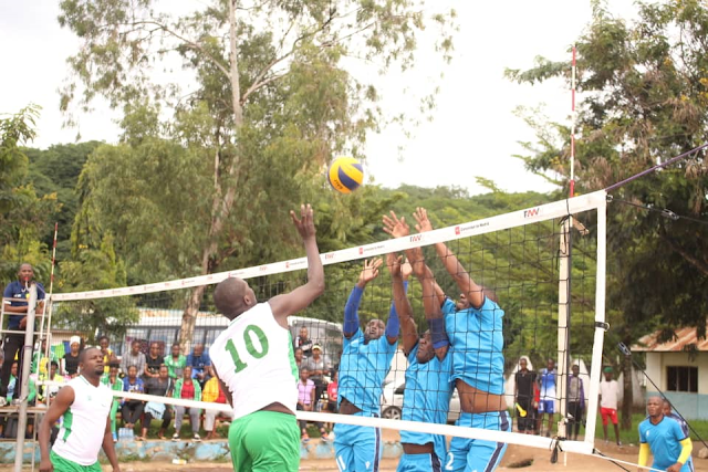 Mchezaji wa timu ya Volleyball ya Tanesco akipiga shuti kwenye timu ya Duce, wakati wa mechi ya michuano ya Shimmuta inayoendelea jijini Mwanza, Tanesco ilishinda Seti 2-0.