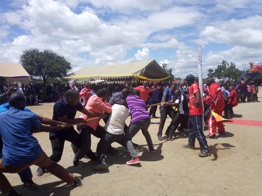Watumishi wa Halmashauri ya Wilaya ya Simanjiro wakishindana kuvuta kamba na wanajeshi wa JWTZ kwenye maadhimisho ya siku ya Ukimwi duniani ambapo katika Mkoa wa Manyara, zilifanyika Mji mdogo wa Mirerani.
