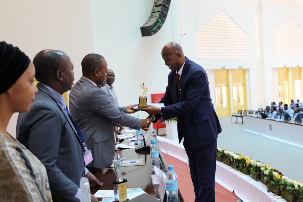 Mhandisi Stephen Manda kutoka Shirika la Umeme (TANESCO), akipokea tuzo ya Udhamini kwa niaba ya Shirika hilo katika Kongamano la Kumi la Wataalamu wa Ununuzi na Ugavi (PSPSTB), mkutano huo wa siku tatu umehudhururiwa na Watu kutoka Tanzania Bara na Visiwani Jijini Dodoma.