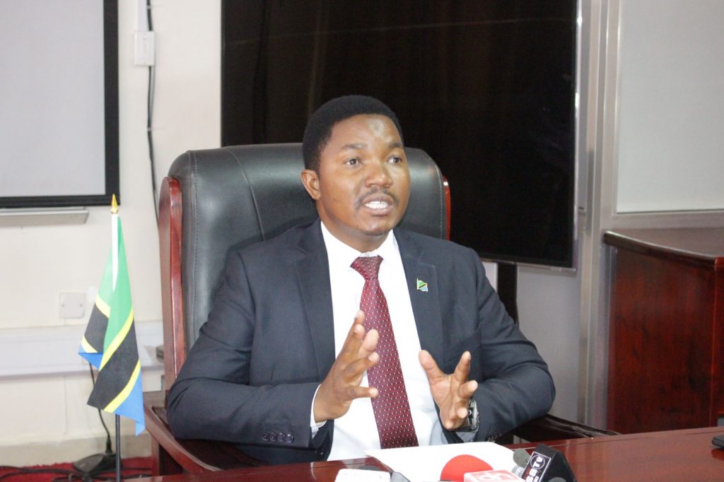 Waziri wa Nchi Ofisi ya Rais Tawala za Mikoa na Serikali za Mitaa,(TAMISEMI) Selemani Jafo,akizungumza na waandishi wa habari (hawapo pichani) ofisini kwake jijini Dodoma wakati akitangaza uchaguzi wa wanafunzi wa kujiunga na kidato cha kwanza mwaka 2020 Tanzania bara.