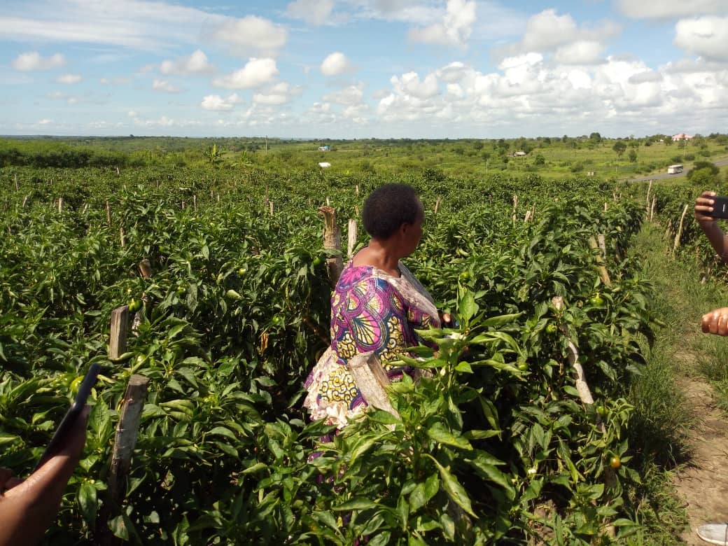 Bi.Veneranda Baraza Mkulima wa Pilipili Hoho Wilayani Chalinze kata ya Kiwangwa akiwa ndani ya Shamba lake na kuwaonesha wanahabari wa kilimo namna ukulima wa hoho unavyoandaliwa mpaka unapovuna.