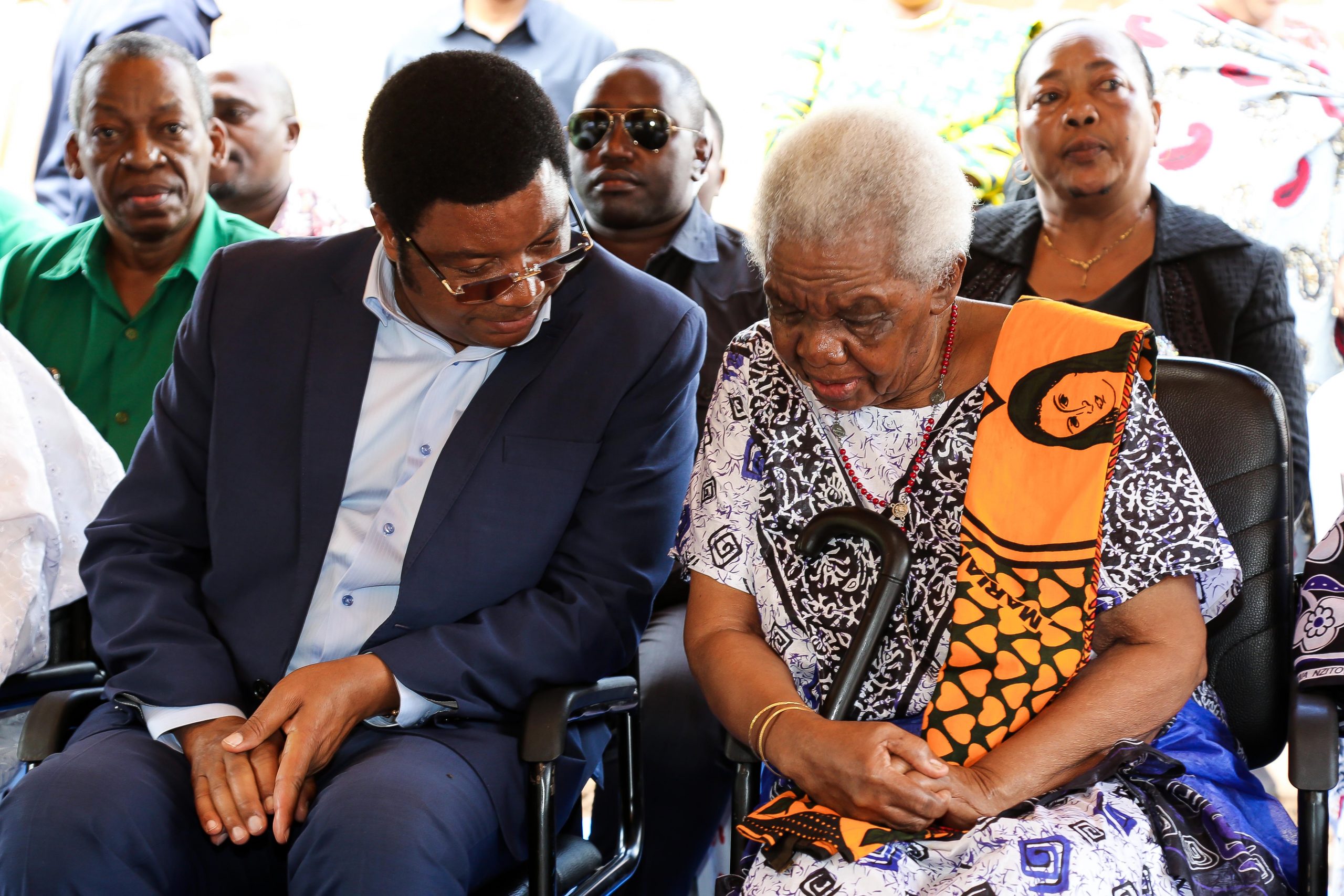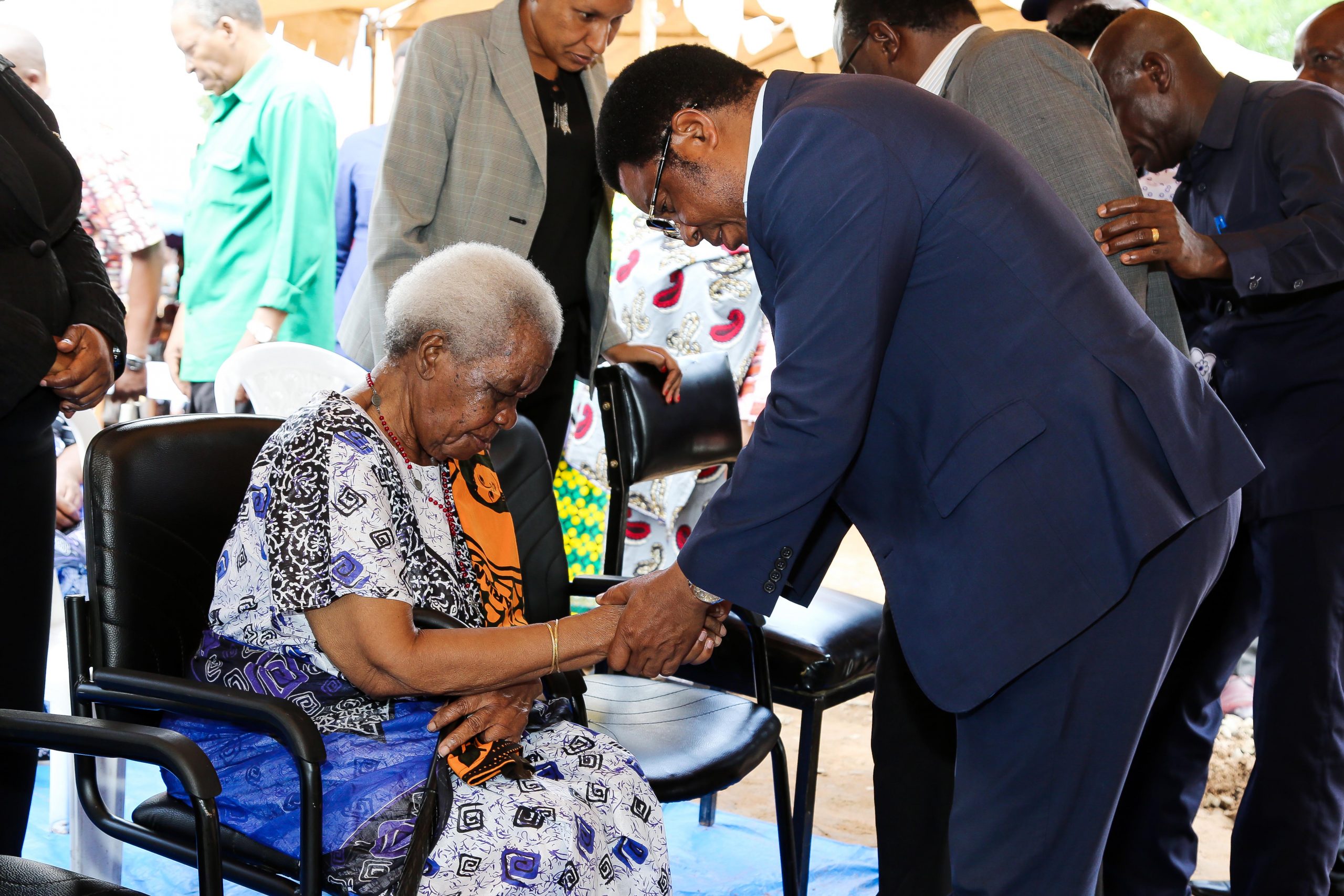 Waziri Mkuu, Kassim Majaliwa, akizungumza na Mama Maria Nyerere, kwenye mazishi ya Kaka yake, Mzee Inyasi Gabriel, aliyefariki tarehe 4.12.2019, huko Musoma, mkoani Mara, Desemba 7, 2019. (Picha na Ofisi ya Waziri Mkuu).