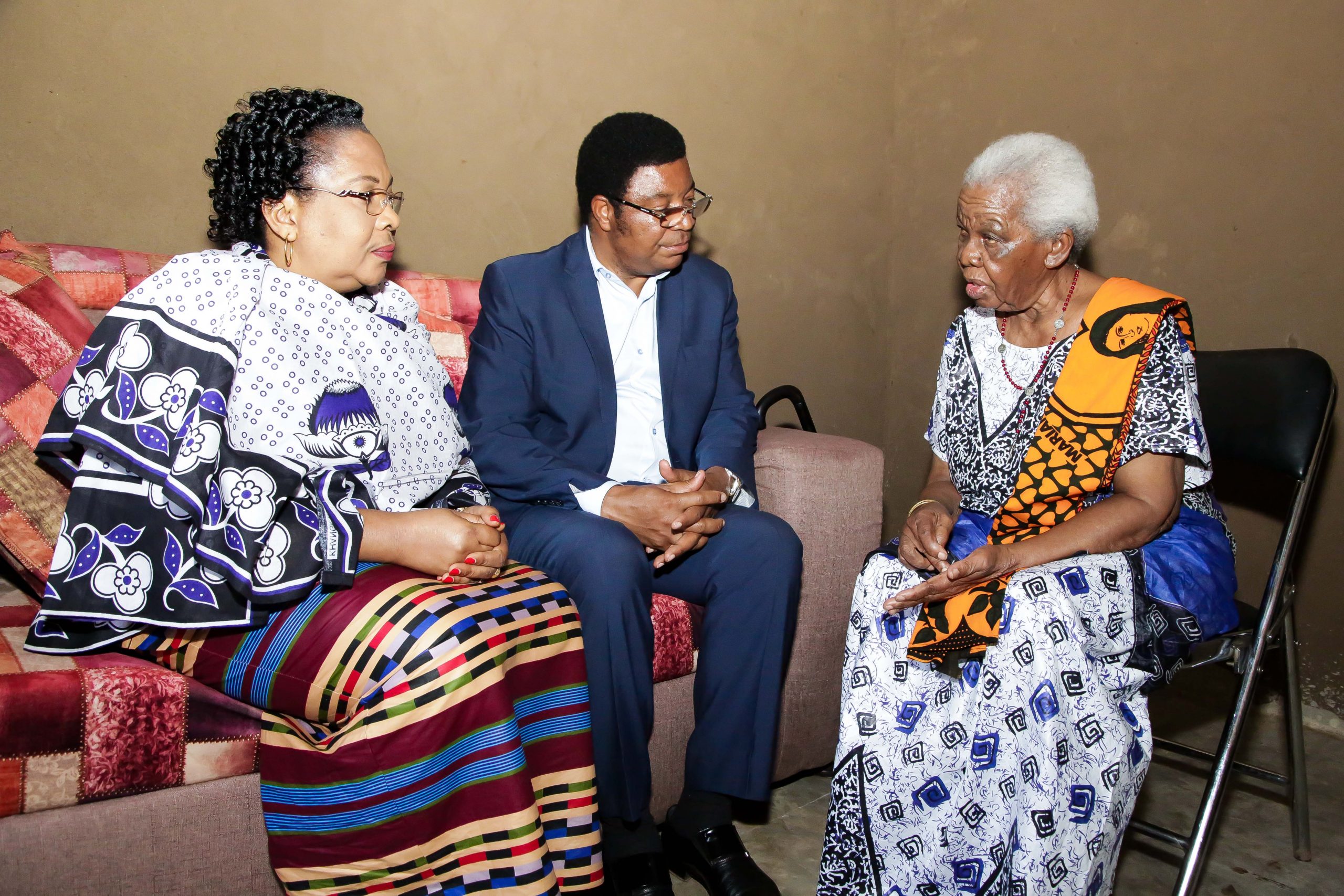 Waziri Mkuu, Kassim Majaliwa, akiwa na Mkewe Mary (kushoto), wakizungumza na Mama Maria Nyerere, baada ya mazishi ya Kaka wa Mama Maria Nyerere, Mzee Inyasi Gabriel, aliyefariki tarehe 4.12.2019, huko Musoma, mkoani Mara, Desemba 7, 2019. (Picha na Ofisi ya Waziri Mkuu)