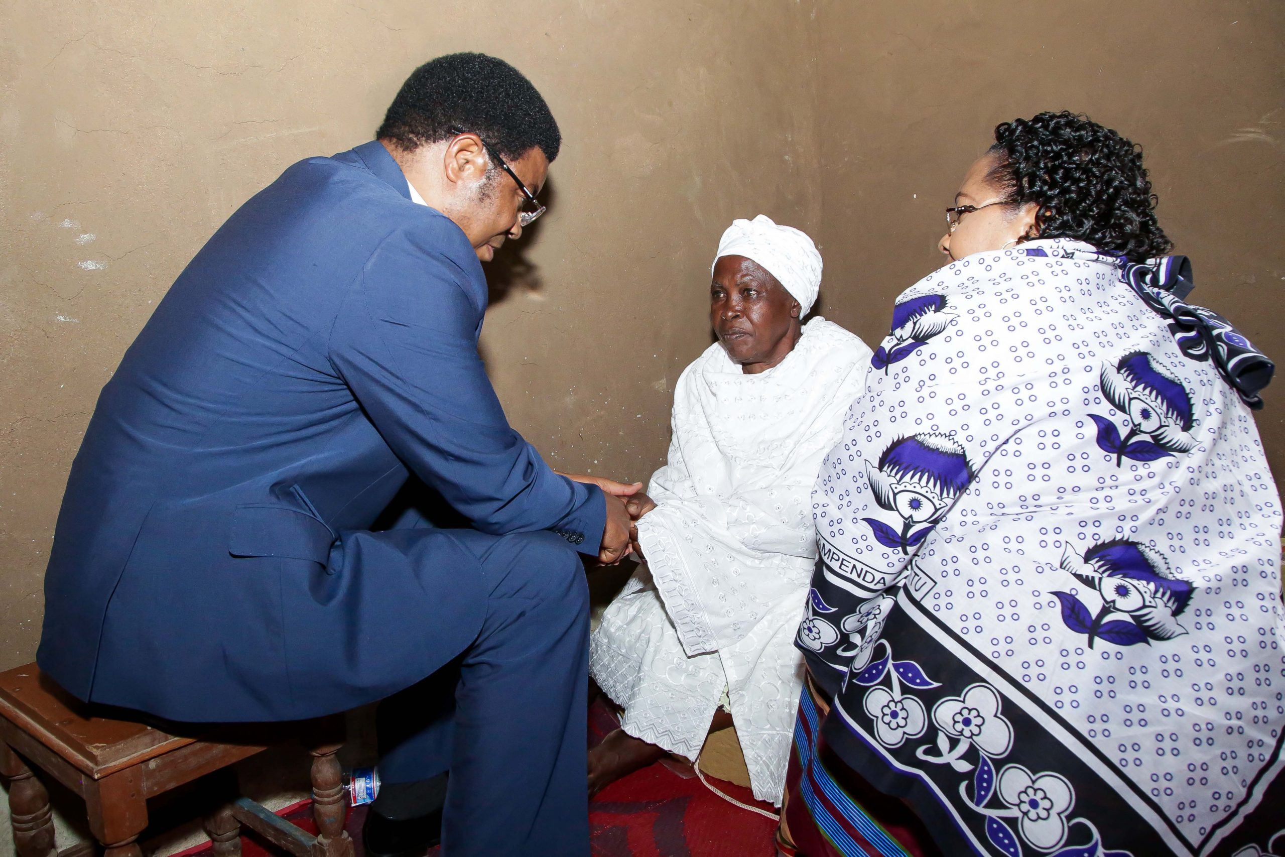 Waziri Mkuu, Kassim Majaliwa, akiwa na Mkewe Mary (kulia), wakimpa pole, Mjane wa Mzee Inyasi Gabriel, aliyefariki tarehe 4.12.2019, huko Musoma, mkoani Mara, ambaye ni Kaka wa Mama Maria Nyerere, baada ya mazishi, Desemba 7, 2019. (Picha na Ofisi ya Waziri Mkuu).