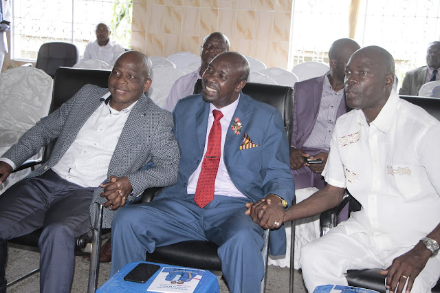Watumishi wa Mungu kutoka nje ya nchi wakionesha mshikamano kwenye maadhimisho hayo. Kutoka kushoto ni Bishop Musa Ngobese (Afrika Kusini), Bishop Mark Mugekenyi (Kenya) na Mchungaji Hererimana Tharcise kutoka Burundi .