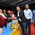 Mchungaji Tharcise kutoka Burundi, akikabidhi zawadi.