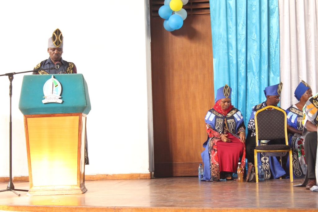 Bagamoyo (TaSUBa) Bw. George D. Yambesi akitoa neno kwa wahitimu pamoja