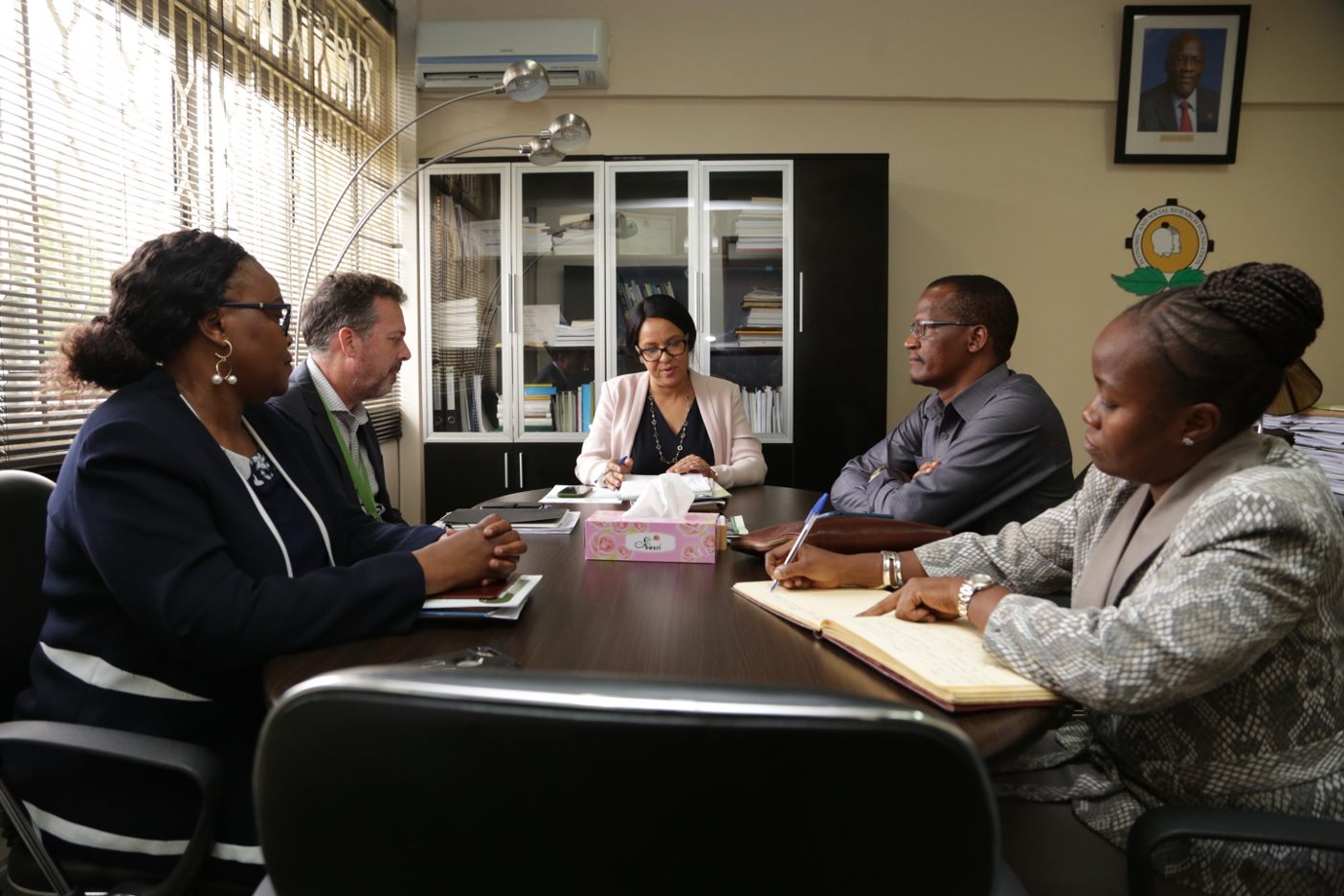 Mkurugenzi Mtendaji wa Taasisi ya Utafiti wa Kiuchumi na Kijamii (ESRF), Dk Tausi Kida (katikati) akitoa maelezo mafupi kuhusu ESRF kwa mgeni rasmi Katibu Mkuu wa Wizara ya Afya, Maendeleo ya Jamii, Jinsia, Wazee na Watoto, Dk John Jingu (wa pili kulia) alipofika ofisini kwa mkurugenzi huyo kusaini kitabu cha wageni wakati wa kongamano la wadau la kujadili programu ya utafiti kuhusu vijana la kujadili namna bora ya kutatua changamoto zinazowakumba watoto na vijana katika miji lililoandaliwa na Taasisi ya Utafiti wa Kiuchumi na Kijamii (ESRF) kwa kushirikiana na Shirika la Umoja wa Mataifa la Kuhudumia Watoto (UNICEF) na Wizara ya Fedha na Mipango chini ya Maabara ya Ukuaji wa Miji Tanzania (TULab) lililofanyika katika ukumbi wa mikutano wa ESRF jijini Dar es Salaam. Wengine katika picha ni Mkuu wa Idara ya Utafiti na Machapisho wa Taasisi ya Utafiti wa Uchumi na Kijamii (ESRF), Profesa Fortunata Makene(wa kwanza kushoto), Mkuu wa Sera ya Jamii kutoka Shirika la Umoja wa Mataifa linalohudumia Watoto (UNICEF) nchini, Dr. Paul Quarles Van Ufford (wa pili kushoto) pamoja na Mwenyekiti wa TULab kutoka Wizara ya Fedha na Mipango Dr. Lorah Madete (wa kwanza kulia).