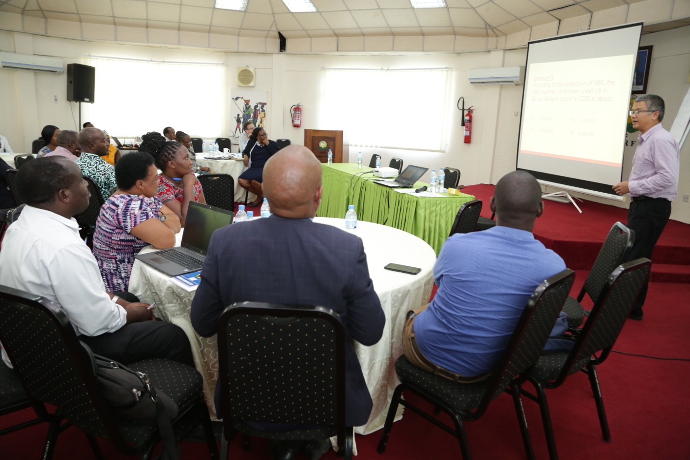 Mtathimini kutoka Shirika la Umoja wa Mataifa linalohudumia Watoto (UNICEF) nchini, Mr. Hong Vu akiendesha chemsha bongo wakati wa kongamano la wadau la kujadili programu ya utafiti kuhusu vijana la kujadili namna bora ya kutatua changamoto zinazowakumba watoto na vijana katika miji lililoandaliwa na Taasisi ya Utafiti wa Kiuchumi na Kijamii (ESRF) kwa kushirikiana na Shirika la Umoja wa Mataifa la Kuhudumia Watoto (UNICEF) na Wizara ya Fedha na Mipango chini ya Maabara ya Ukuaji wa Miji Tanzania (TULab) lililofanyika katika ukumbi wa mikutano wa ESRF jijini Dar es Salaam.