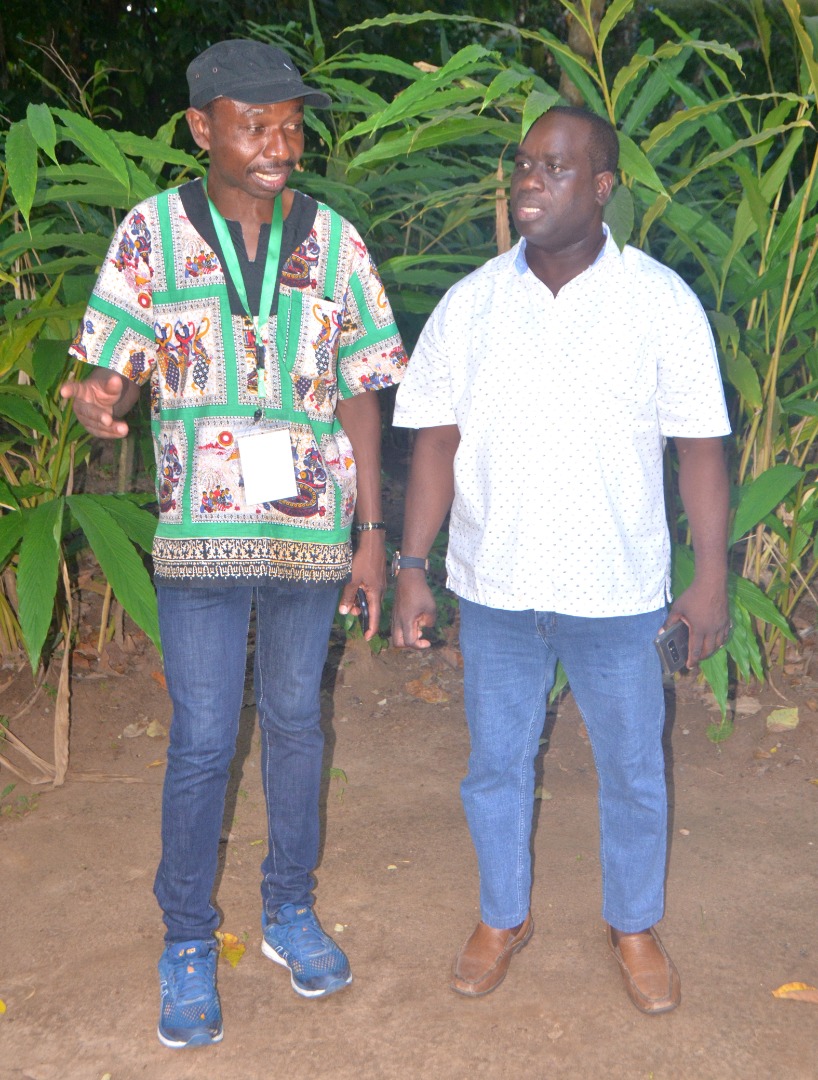 Mkurugenzi wa Habari maelezo Zanzibar Juma Mohamed akibadilishana mawazo na Mmoja kati ya Wanadiaspora Maggid Mjengwa katika Ziara ya  Wanadiaspora katika Sehemu mbalimbali ikiwemo shamba la Viungo(Spice)na kuangalia Wanyama Jozani Mkoa wa Kusini Unguja.