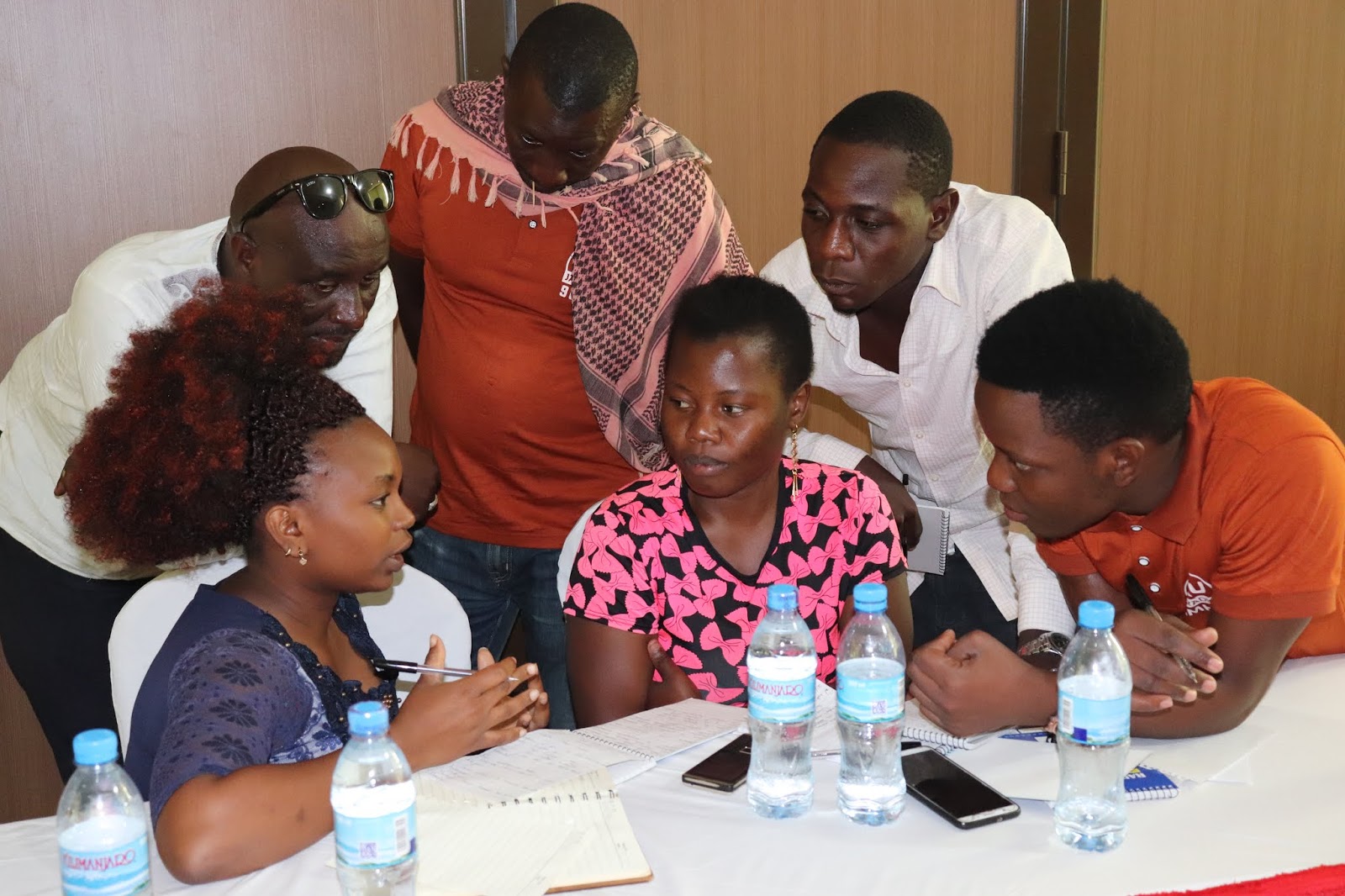 Waandishi wa habari wanaoripotia redio Jamii (Mtwara), Ruangwa (Lindi), Pambazuko (Ifakara), Chai (Rungwe), Ileje ( Songwe), na Kitulo (Makete-Njombe) wakiwa kwenye kazi za makundi wakijadili namna ya kuandaa habari na kuiwasilisha kwa kutumia miundo mbalimbali ya maudhui.