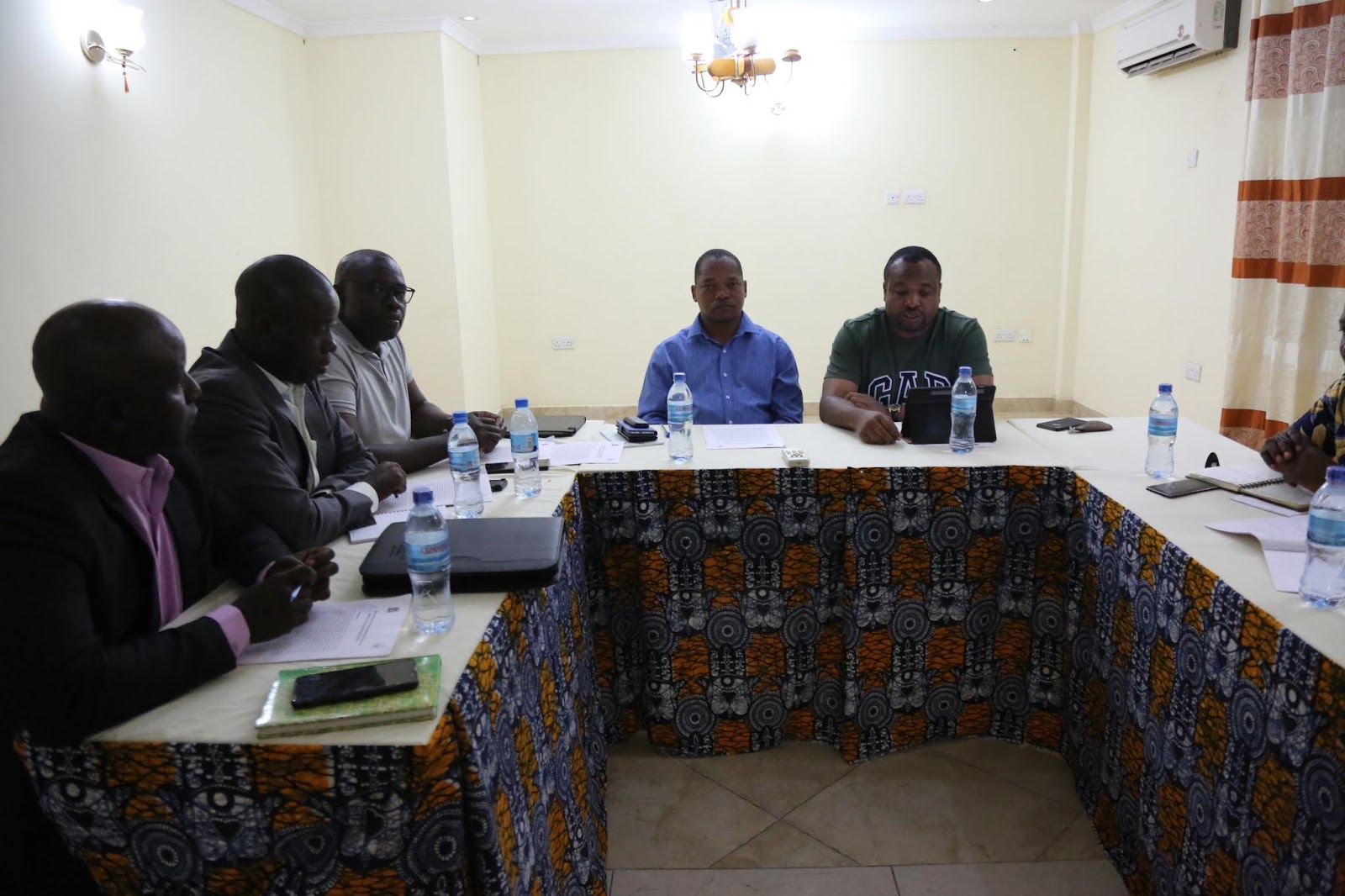 Naibu Waziri wa Madini Stanslaus Nyongo akiongoza Kikao na wataalamu waliofanya tathmini ili kujiridhisha endapo Tanzania inakidhi vigezo vya kupewa cheti ili kuwa miongoni mwa nchi zinazotekeleza matakwa ya Nchi wanachama kwa kutokuruhusu rasilimali za nchi kutumika kuchochea maasi.