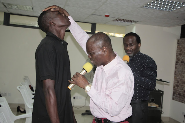 Mtume Paul Toritseju kutoka Nigeria, akimuombea Jackson Juma.