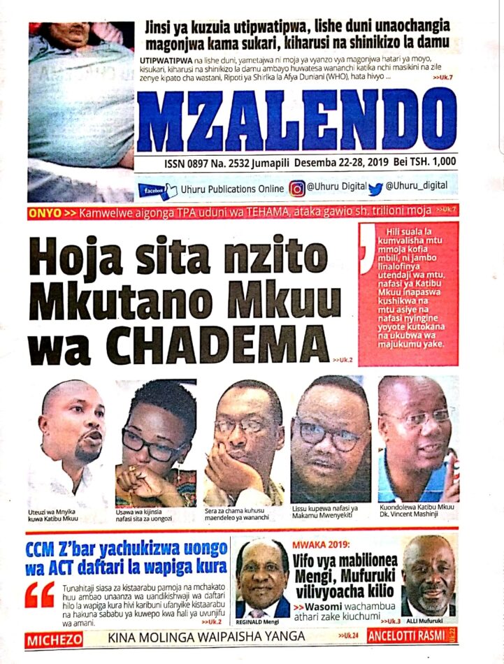 MichezoPITIA VICHWA VYA HABARI KATIKA MAGAZETI YA LEO DISEMBA 22,2019 Last updated: 2019/12/22 at 3:55 AM Alex Sonna 6 years ago Share SHARE Alex Sonna December 22, 2019 December 22, 2019 Share this Article Facebook Twitter Email Print Previous Article LIVERPOOL MABINGWA WAPYA WA KOMBE LA DUNIA NGAZI YA VILABU Next Article MKUUWA WILAYA YA ARUSHA AWATAKA WANAWAKE KUWA WAZALENDO NA KULIPA KODI