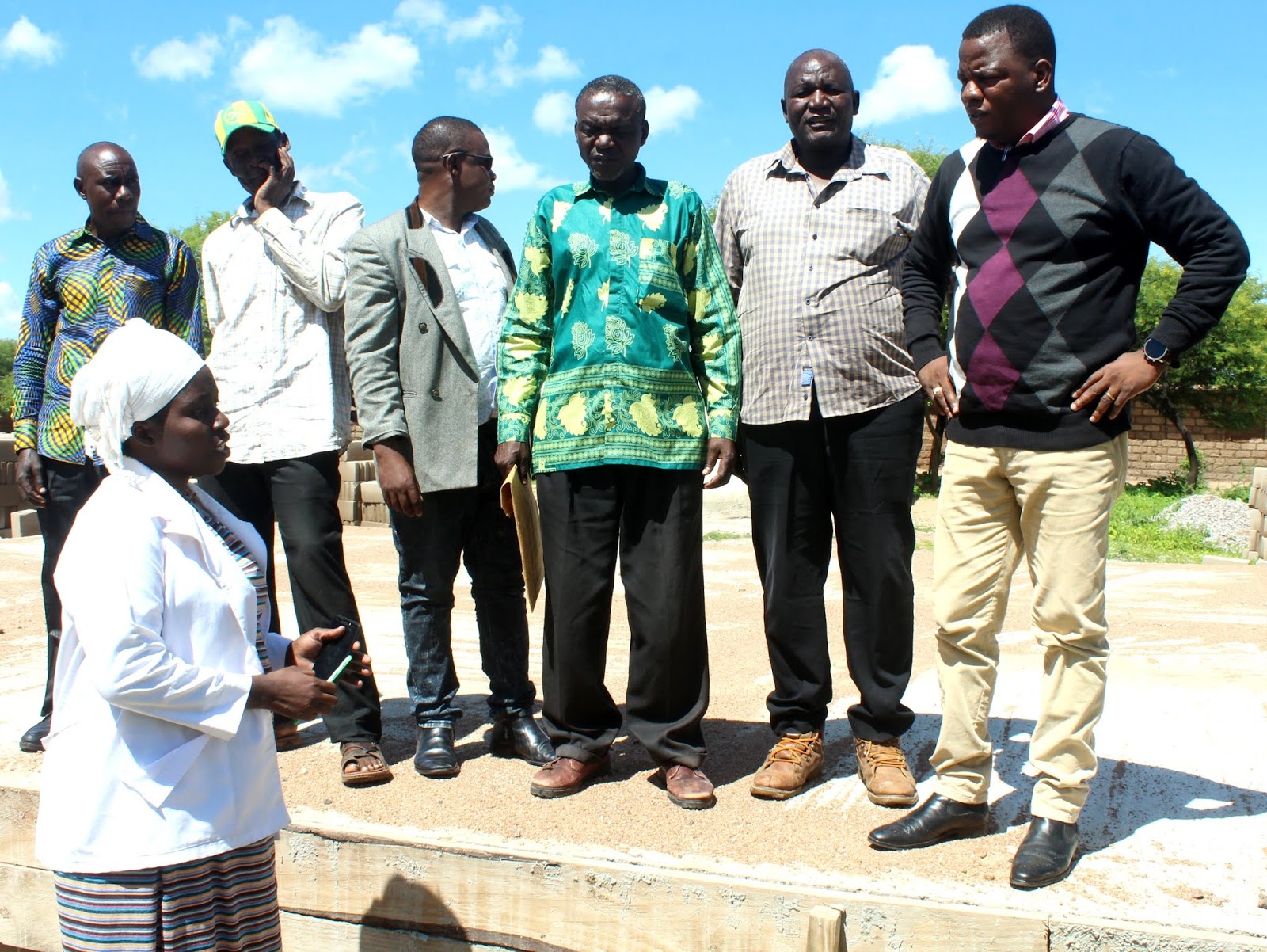 Mbunge wa Jimbo la Shinyanga Mjini Stephen Masele, wa kwanza wa kulia, akisikiliza maelezo ya Mganga Mfawidhi wa Zahanati ya Galamba Manyasi Janeti, mara baada ya kumaliza kukagua ujenzi wa maabara kwenye Zahanati hiyo.