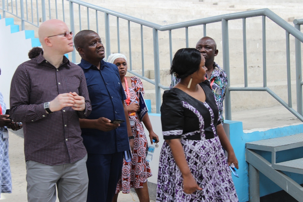 Possi (wa kwanza kushoto) akikagua maendeleo ya ujenzi wa jengo la Sanaa za