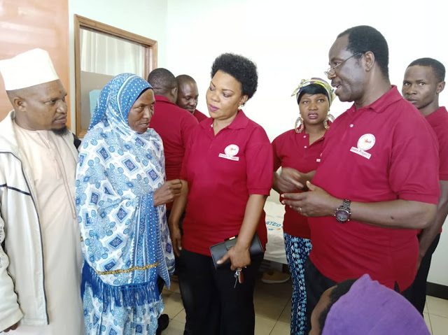 Afisa Ufuatiliaji wa SPRF, Mwedinuhu Beleko, akiteta jambo na muuguzi wa hospitali ya Rufaa Mandewa kwenye maadhimisho ya miaka mitano ya taasisi hiyo.
