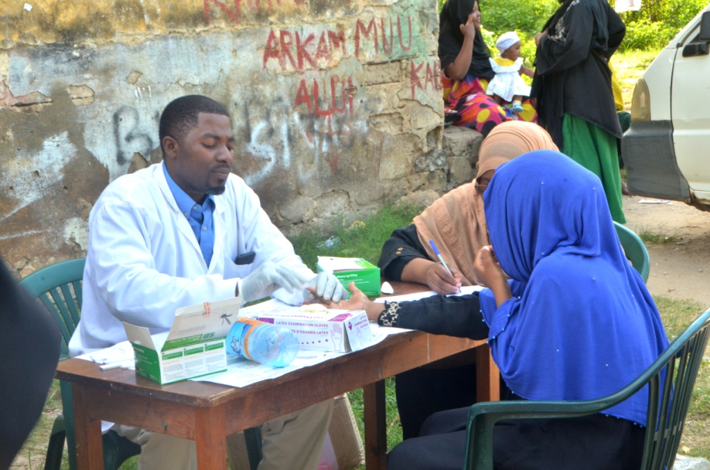 Meneja Mratibu wa Malaria Unguja na Pemba Abdalla Suleiman akiwa pamoja na Naibu Meneja Faiza Abbas wakishajiisha watu kwenda kutoa Damu kwa ajili ya kupima Malaria yaliogundulika zaidi katika Shehia hio ambapo kiasi cha watu 50 wamegundulika Kikwajuni Majumba ya Mjarumani Zanzibar.