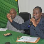 RAIS wa Zanzibar na Mwenyekiti wa Baraza la Mapinduzi Mhe. Dk. Ali Mohamed Shein, akimsikiliza Msimamizi wa Mradi Ujenzi la Kibondemzungu.Eng.Cosmas Masolwa, akitowa maelezo ya kitaalum ya ujenzi huo, wakiwa katika daraja hilo baada ya ufunguzi wake uliofanyika leo,9-1-2020, ikiwa ni shamrashamra za Miaka 56 ya Mapinduzi ya Zanzibar.(Picha na Ikulu)