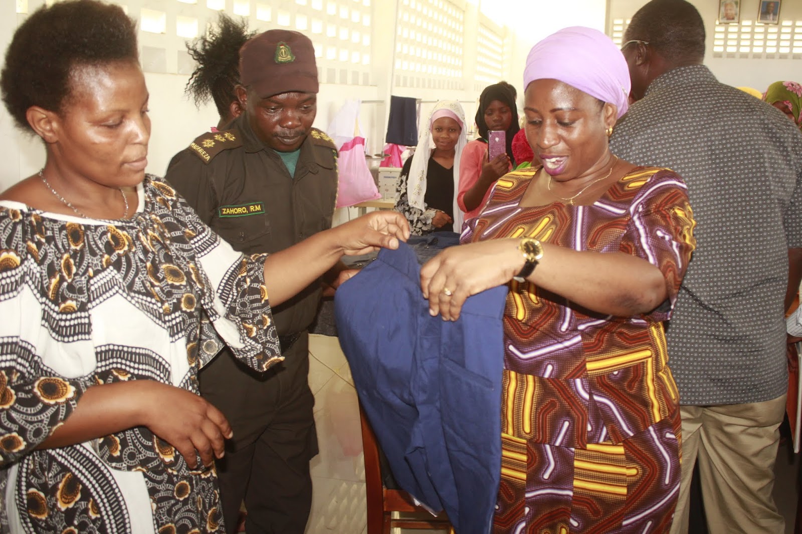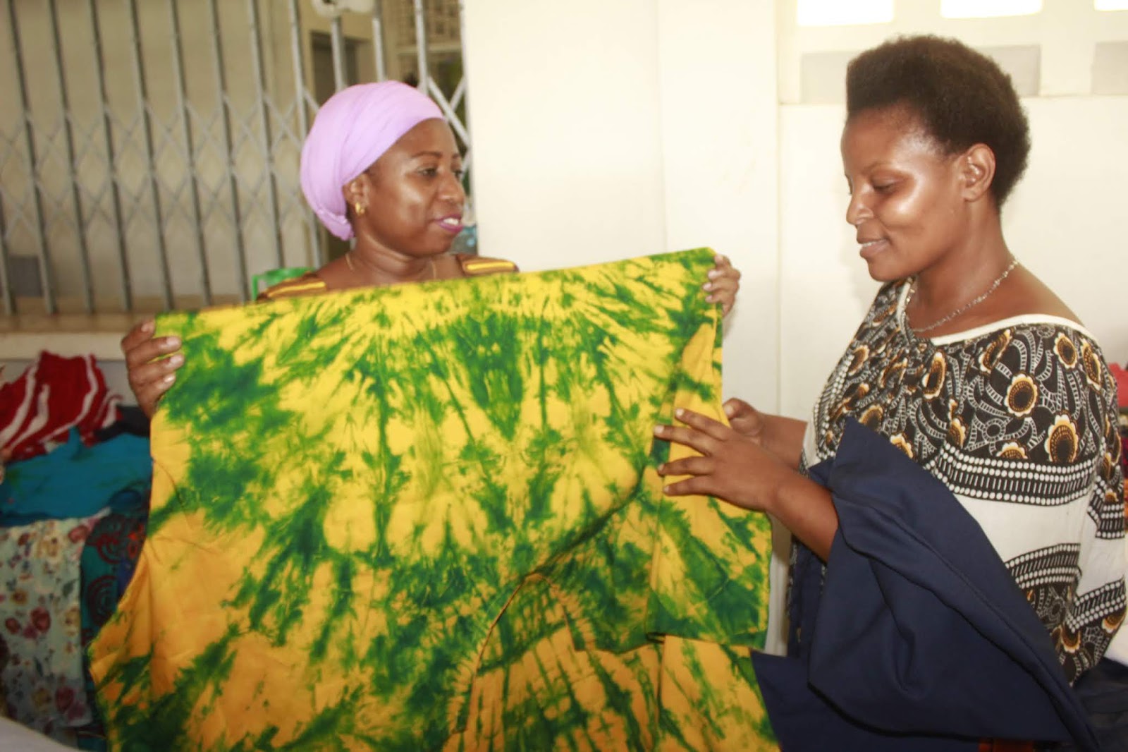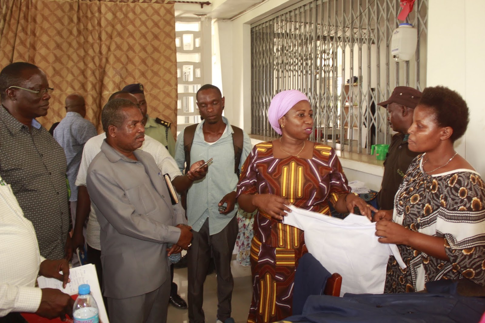 akiangalia nguo ambazo zinashonwa na kikundi hicho mara baada ya