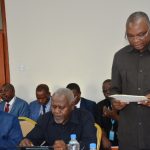 Waziri Mkuu, Kassim Majaliwa, akisalimiana na Rais Mstaafu wa Awamu ya Pili, Benjamin Mkapa, wakati akiondoka nchini, katika uwanja wa Julius Nyerere, kuelekea Msumbiji kumwakilisha Rais John Pombe Magufuli, kwenye uapisho wa Rais wa Msumbiji Filipe Nyusi. Januari 14, 2020. (Picha na Ofisi ya Waziri Mkuu)