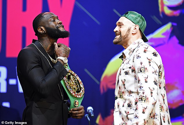 Mabondia Deontay Wilder (kulia) na Tyson Fury wakitambiana wakati wa mkutano wao wa kwanza na Wasandishi wa Habari mapema leo ukumbi wa Novo Theatre Jijini Los Angeles kuelekea pambano lao marudiano Februari 22 ukumbi wa MGM Grand Jijini Las Vegas, Marekani baada ya kutoka droo kwenye pambano la kwanza miezi 13 iliyopita nchini humo PICHA ZAIDI SOMA HAPA