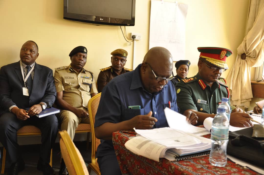 Katibu Mkuu wa Wizara ya Mambo ya Ndani ya Nchi, Meja Jenerali Jacob Kingu (Kushoto), akitoa maelekezo kwa baadhi ya Viongozi wa Vyombo vilivyomo ndani ya Wizara hiyo, kabla ya kuanza Kikao cha Kamati ya Kudumu ya