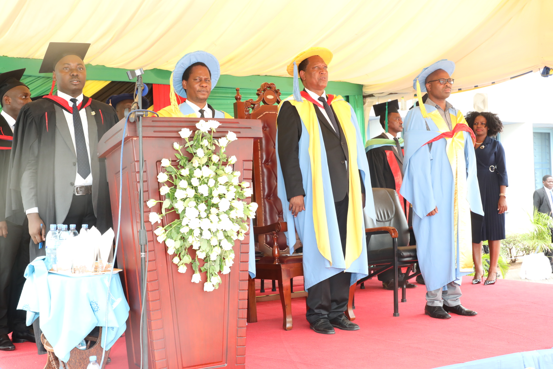 wakiimba wimbo wa Taifa kabla ya kuanza kwa mahafali
