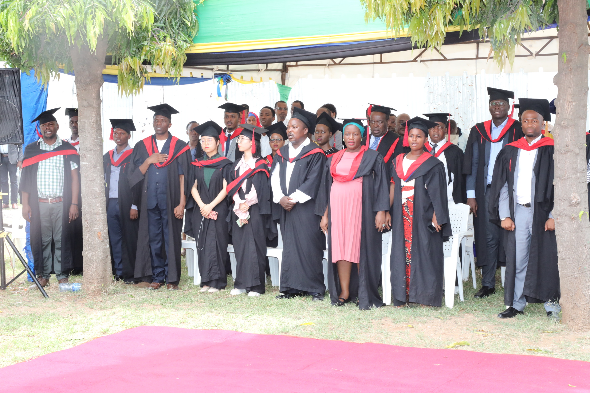 Wahadhiri wa Chuo hicho nao wakiwa wamesimama huku