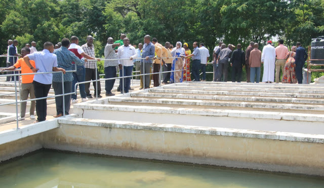 Wadau wa maji kutoka mkoa wa Tabora wakiwa katika eneo la kutibu maji ya bwawa la Ning’hwa.