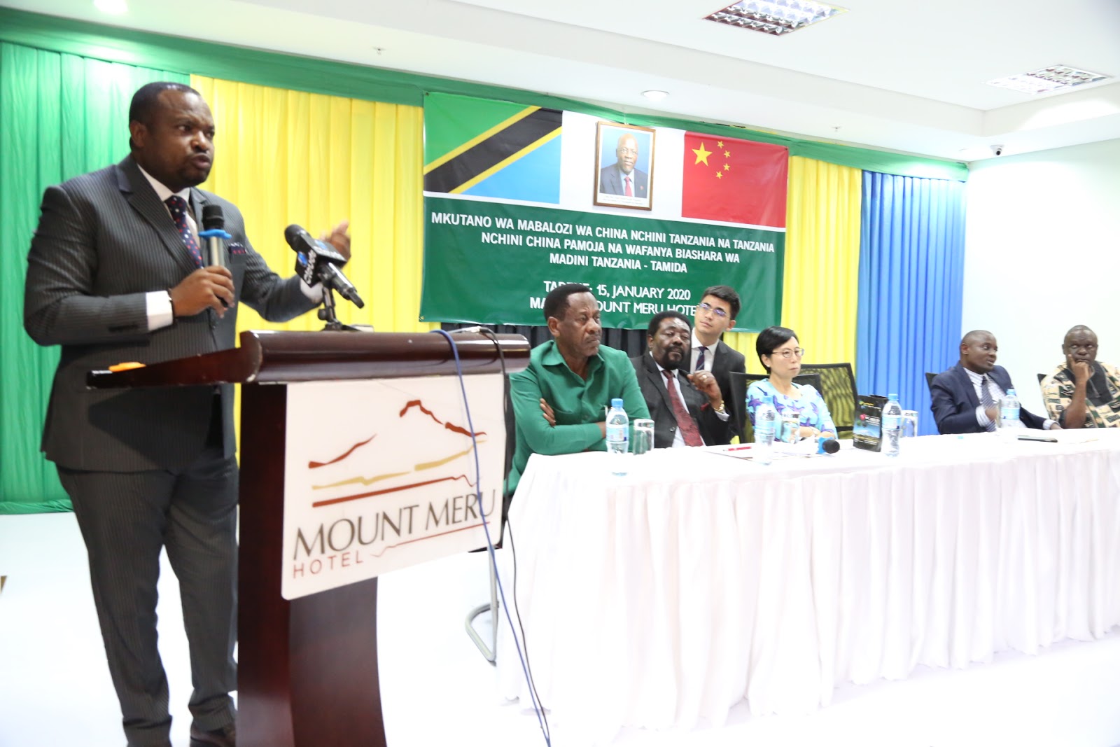 Balozi wa China nchini Tanzania Wang ke akizungumza kwenye mkutano na wadau wa madini katika ukumbi wa Mount Meru jijini Arusha |