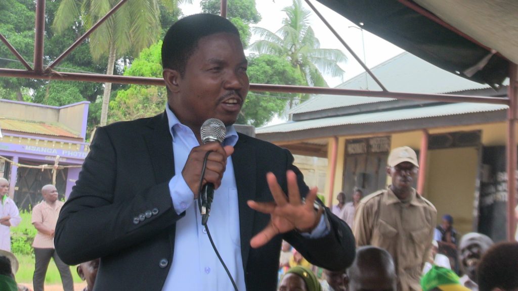 Waziri wan chi Ofisi ya Rais Tawala za mikoa na serikali za mitaa (TAMISEMI) Seleman Jafo ambaye pia ni Mbunge wa Jimbo la Kisarawe akizungumza na wananchi wa kata ya Msanga hawapo pichani wakati wa ziara yake ya kikazi kwa ajili ya kutembelea miradi mbali mbali ya maendeleo katika Wilaya ya Kisarawe.