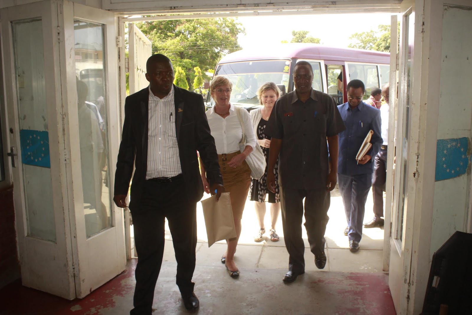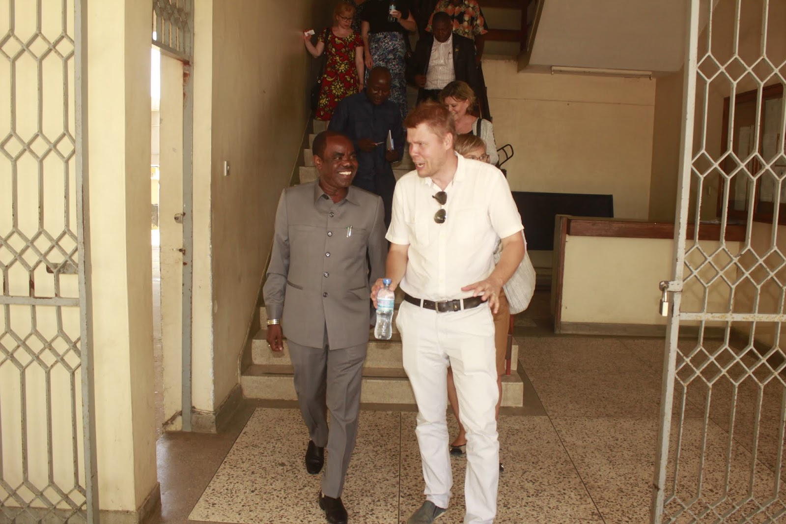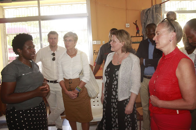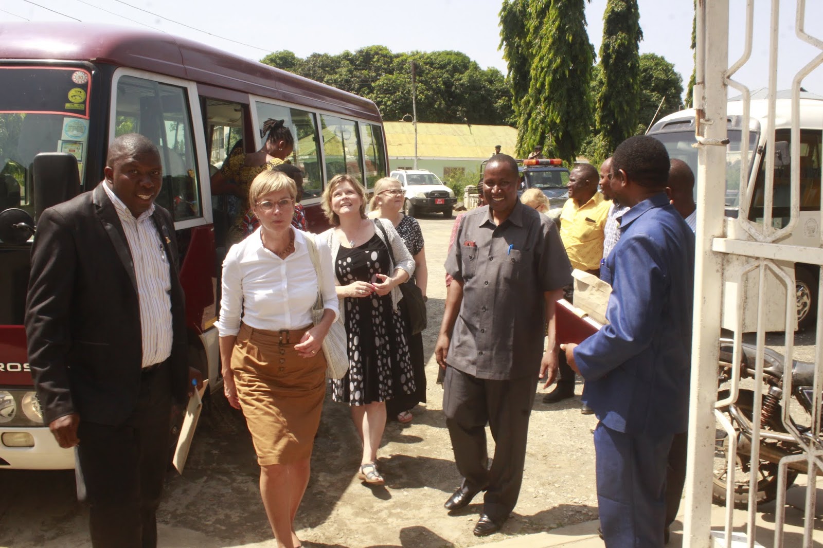 Sehemu ya ujumbe wa Wabunge kutoka nchini Finland wakiingia kwenye Kituo cha Kulea Watoto wenye ulemavu cha (YDCP) Jijini Tanga wakiongozwa na Mratibu wa Kituo hicho Leopodi Abeid kushoto aliyevaa suti nyeusi