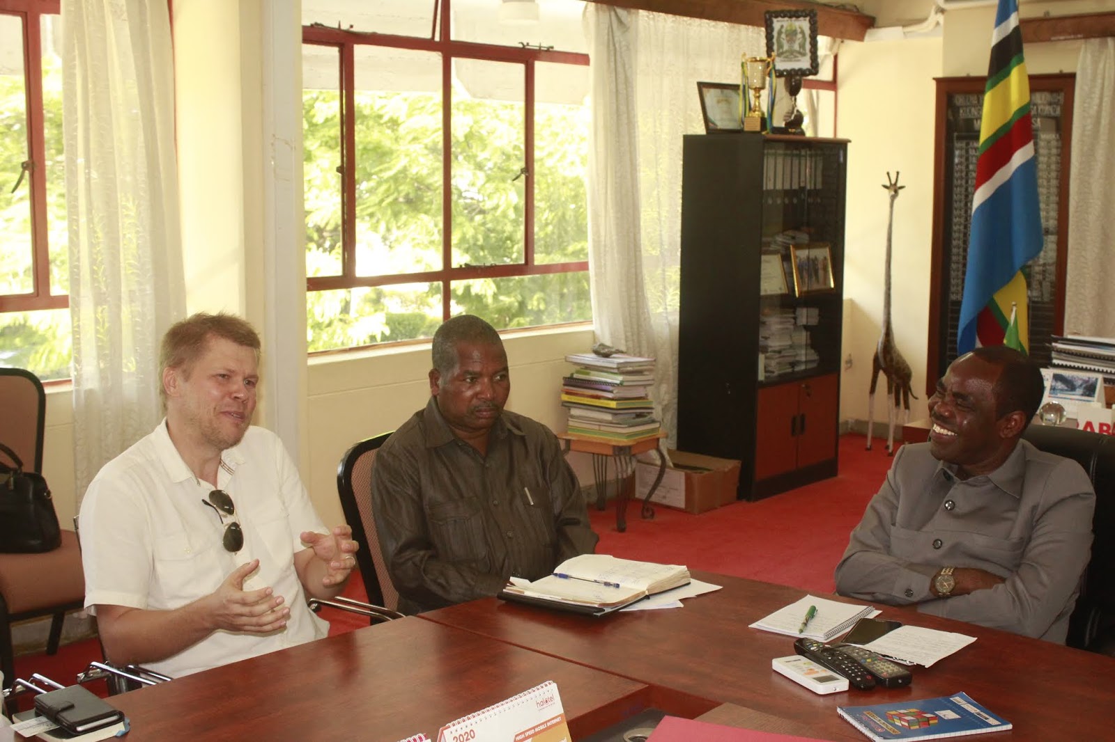 Mmoja wa Wabunge wa nchini Finland kushoto akitate jambo na Mkuu wa Mkoa wa Tanga Martine Shigella leo mara baada ya kumtembelea ofisini kwake katikati ni Mkuu wa wilaya ya Tanga Thobias Mwilapwa
