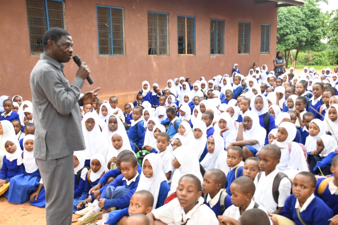 Afisa Maendeleo ya Jamii Mkuu wa Wizara ya Afya Idara Kuu Maendeleo ya Jamii Bw. Matias Haule akitoa ufafanuzi kuhusu maambukizi ya mapya ya UKIMWI kwa wanafunzi wa Shule ya Msingi Mininngani iliyoko Kondoa Mjini Mkoani Dodoma.