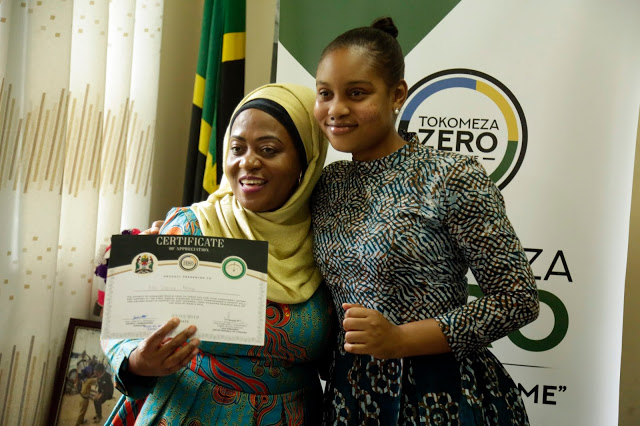 Naibu Waziri wa Nishati Mhe. Subira Mgalu, (kushoto) akipoz kwa picha na Mkuu wa Wilaya ya Kisarawe mkoani Pwani, Mhe. Jokate Mwegelo baada ya kupokea cheti cha shukrani kutoka kwa Mkuu huyo wa wilaya kwa ushiriki wake wa kuchangia kampeni ya “TOKOMEZA ZERO” inayolenga kuongeza kiwango cha ufaulu wa wanafunzi wilayani humo. Mhe. Mgalu alikuwa kwenye ziara ya kukagua upelekaji umeme kwenye maeneo ya pembezoni mwa miji na majiji (periurban) ambapo miongoni mwa maeneo yatakayofaidika na mradi huo ni taasisi za elimu.
