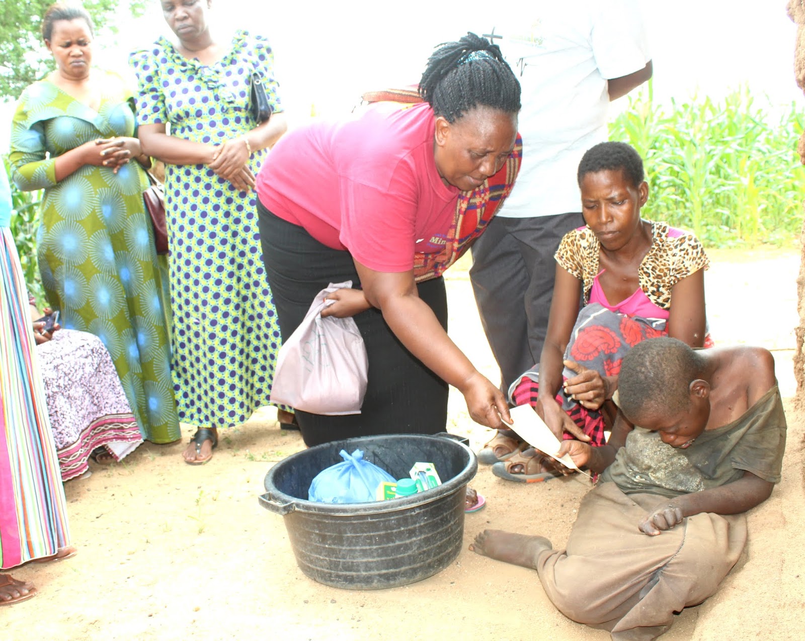 Mwinjilisti Ester Emmanuel akitoa msaada kwa mtoto mlemavu mwenye uhitaji.