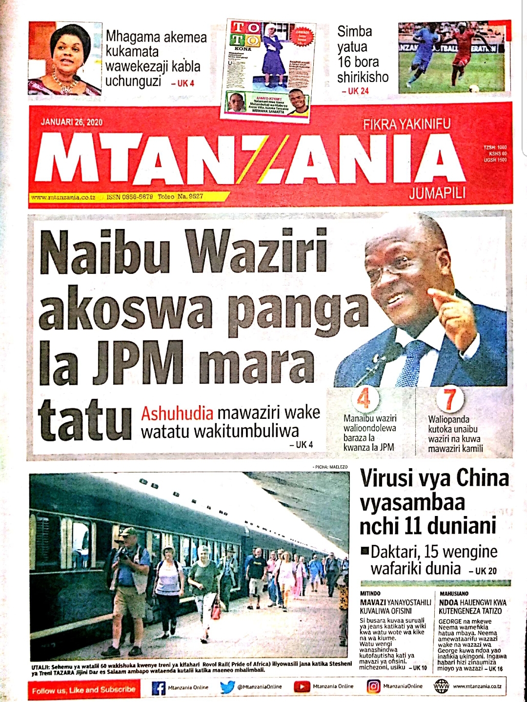 MichezoPITIA VICHWA VYA HABARI KATIKA MAGAZETI YA LEO JANUARI 26,2020 Last updated: 2020/01/26 at 3:46 AM Alex Sonna 6 years ago Share SHARE Alex Sonna January 26, 2020 January 26, 2020 Share this Article Facebook Twitter Email Print Previous Article WAOMBAJI MAKANISA MBALIMBALI SHINYANGA MJINI WATOA MSAADA KWENYE KAYA ZENYE UHITAJI KIJIJI CHA LYANDU Next Article SERIKALI KUPELEKA MAWASILIANO YA SIMU SINGIDA MASHARIKI
