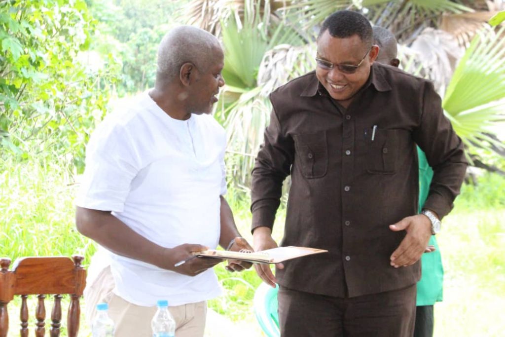 Mbunge wa Jimbo la Singida Mashariki Mhe.Miraji Mtaturu akisalimiana na mmoja wa wazee wa kijiji ambaye pia ni mwenyekiti wa Amcos Misughaa(katikati) Naibu Waziri wa Ujenzi,Uchukuzi na Mawasiliano Mhandisi Atashasta Nditiye mara baada ya kuongea na wananchi wa kijiji cha Msule kilichopo Kata ya Misugha ambacho kinatarajiwa kupata mawasiliano ya simu mwaka huu.