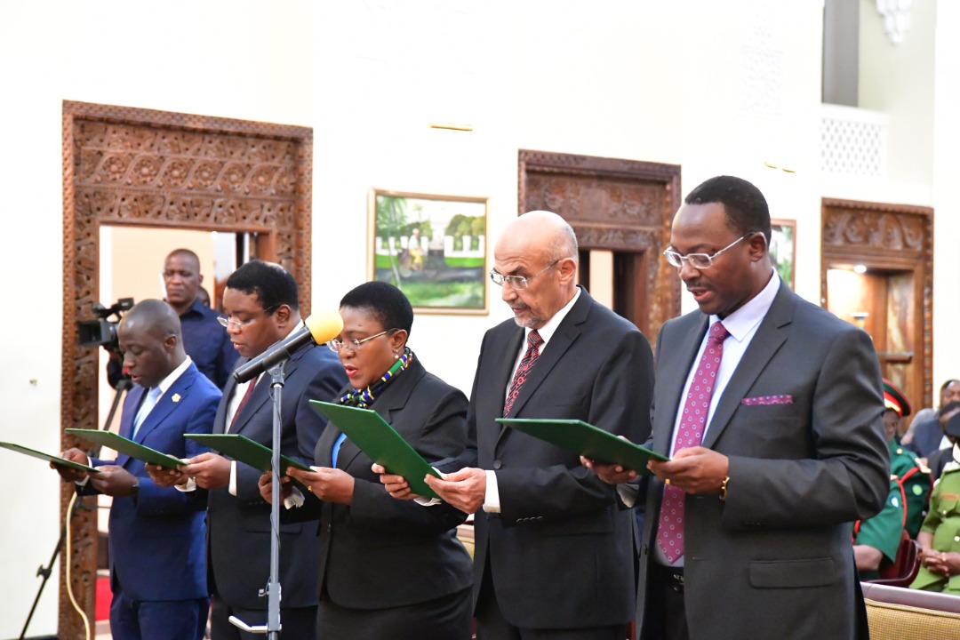 Viongozi waliopishwa wakila kiapo cha Uadilifu kwa vioungozi wa Umma Ikulu jijini Dar es Salaam.