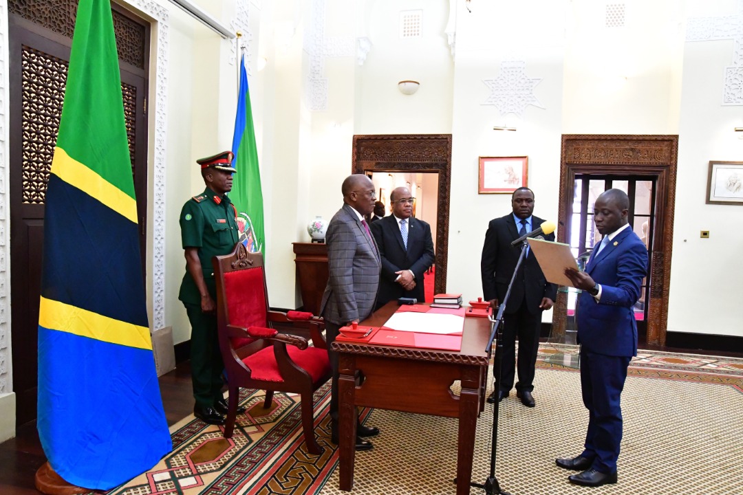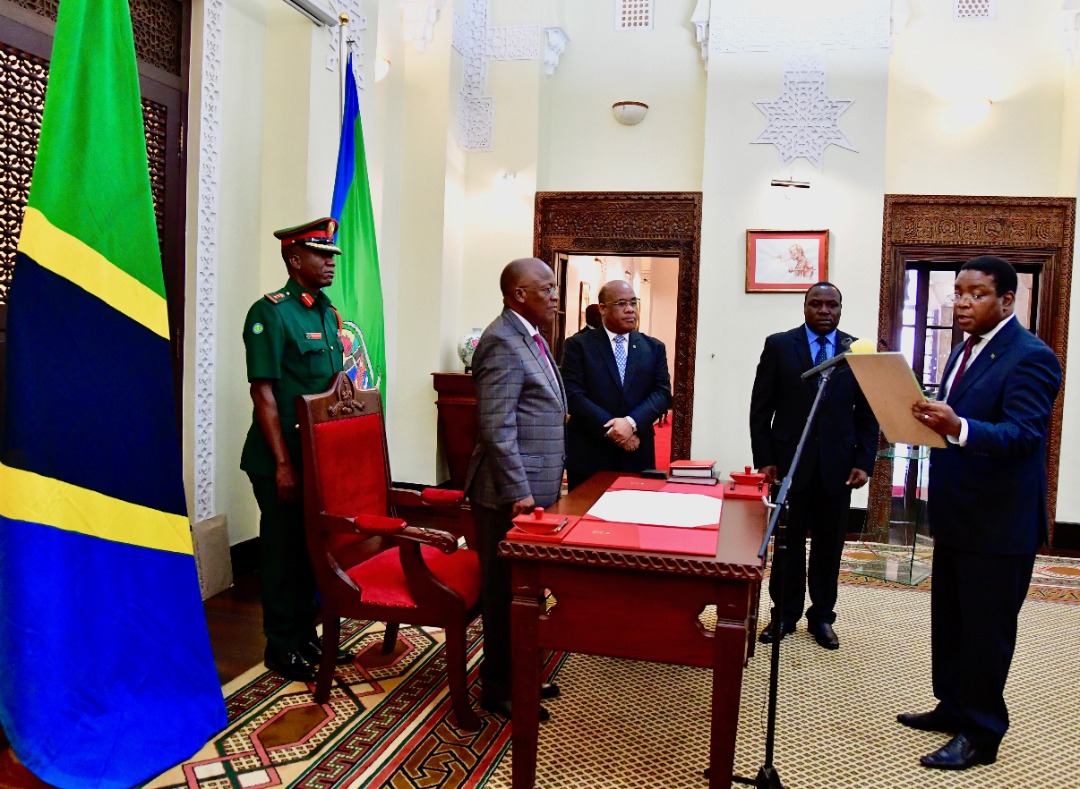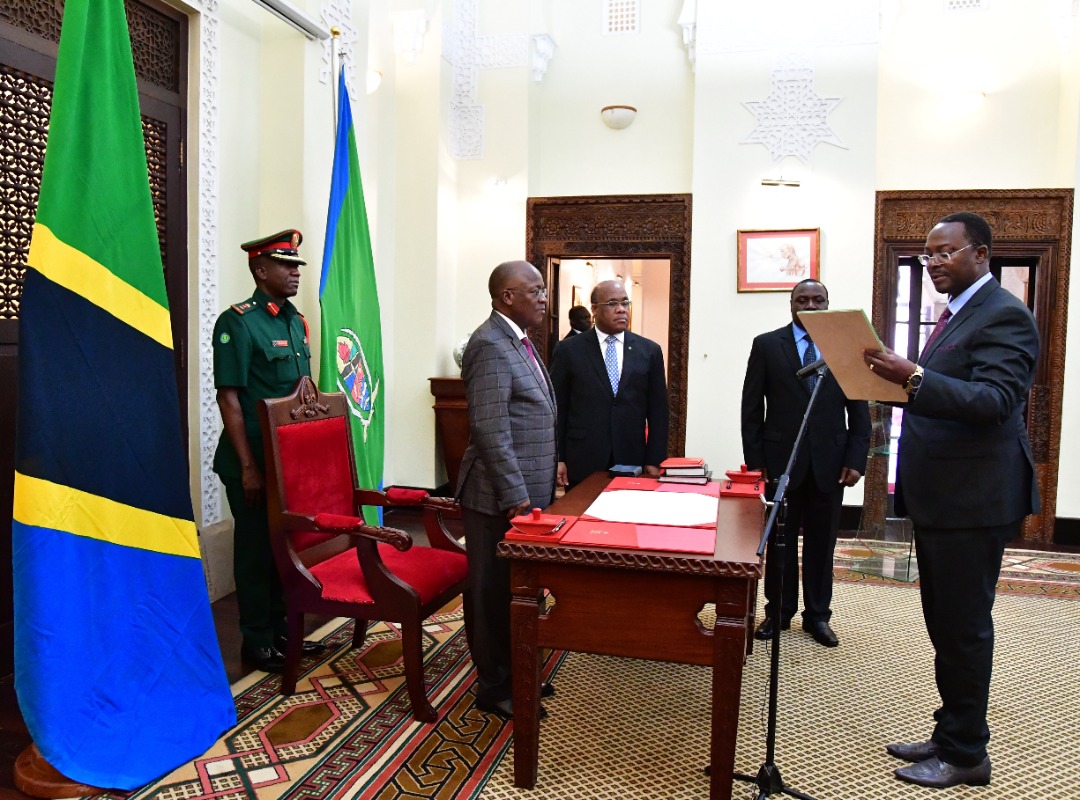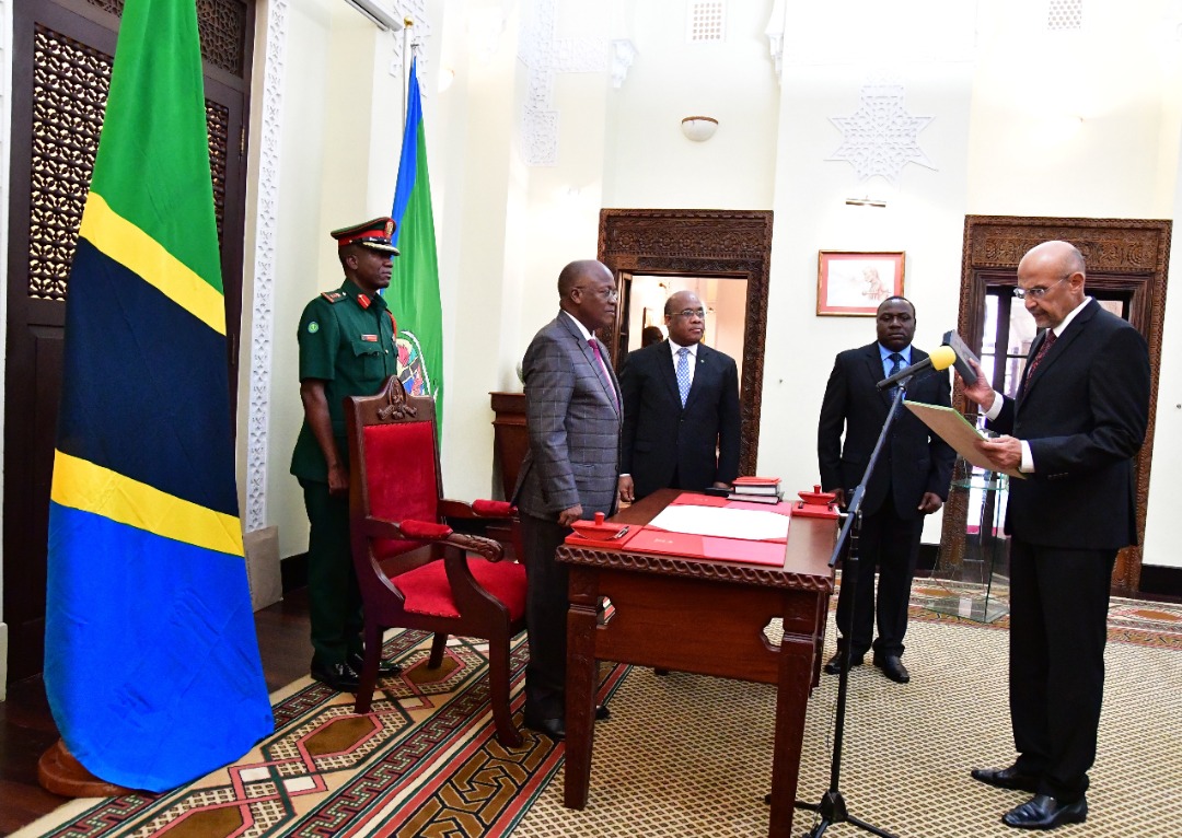 Tanzania Mheshimiwa Dkt. John Pombe Magufuli akimuapisha Hussein Kattanga kuwa Balozi wa Tanzania nchini Japan