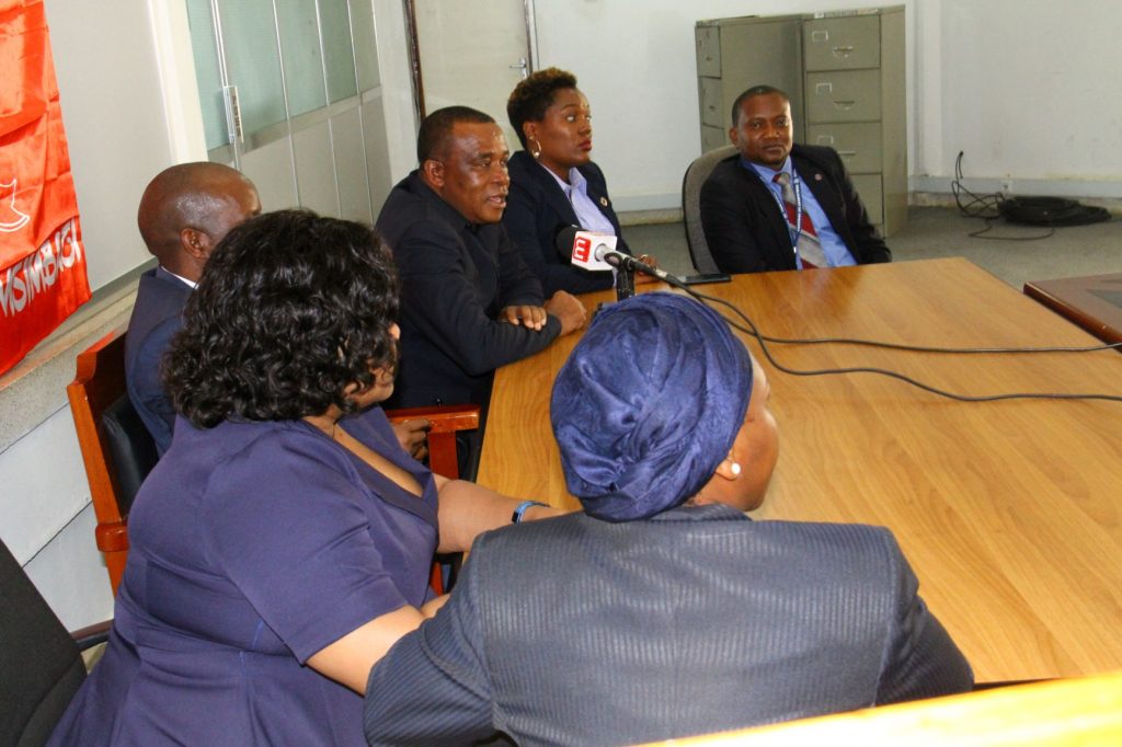 Mashabiki wa Simba Mhe.Salome Makamba (kulia),akiongea na waandishi wa habari (hawapo pichani) akiwahamasisha Mashabiki wote waliopo Dodoma na nje ya Dodoma kujitokeza kwa wingi katika uzinduzi wa Tawi Jipya la WEKUNDU wa MJENGONI pamoja na Uzinduzi wa Kadi za Mashabiki zoezi hilo litafanyika kesho jijini Dodoma.