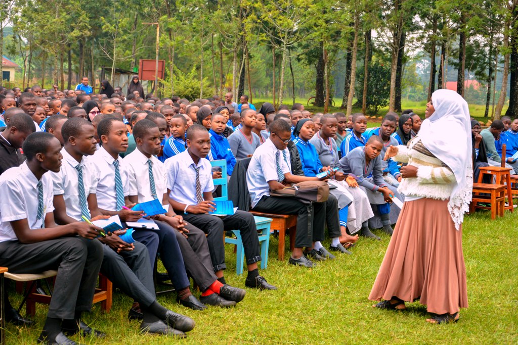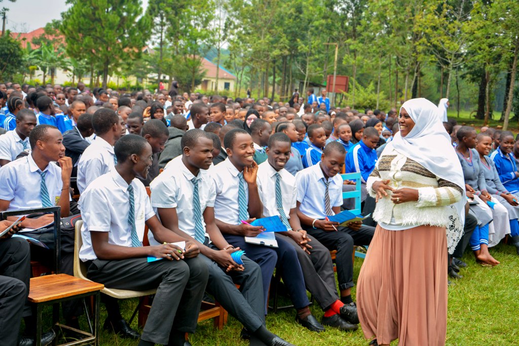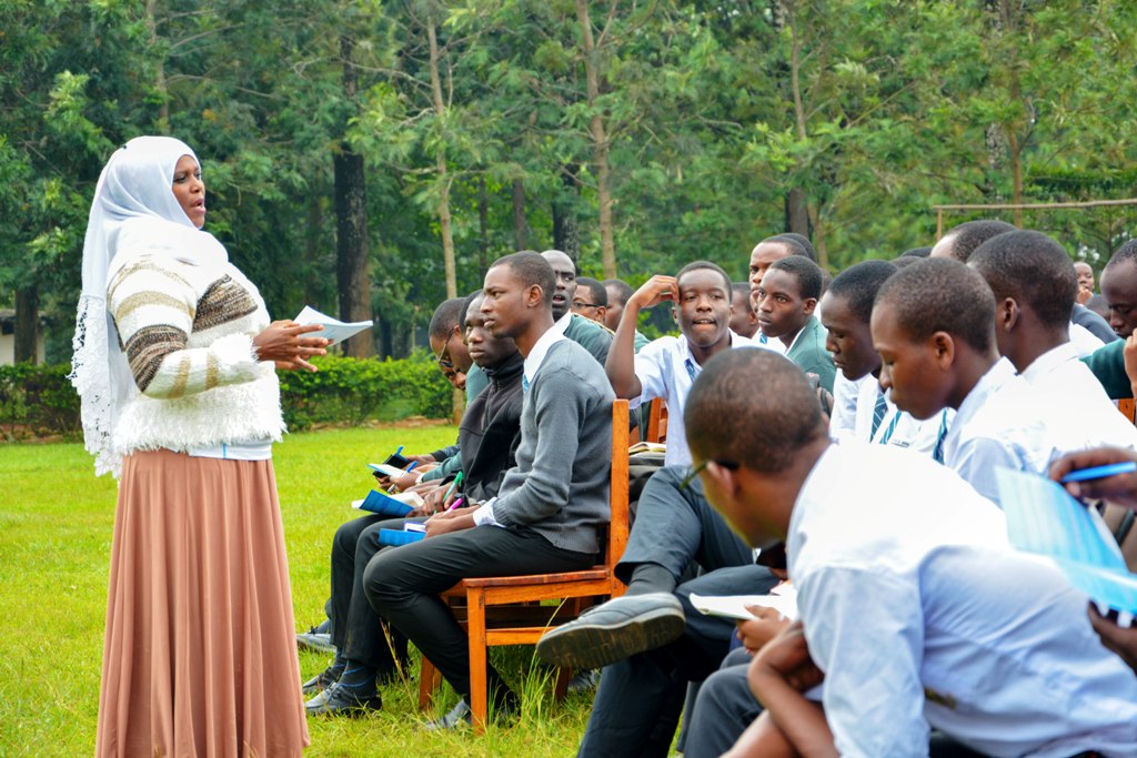 Mkufunzi Mkuu Kitengo cha huduma za viwanja vya ndege kutoka Chuo cha Mamlaka ya Usafiri wa Anga Tanzania(CATC) kilichopo Dar es Salaam Bi.Thamarat Abeid akitoa ufafanuzi wa fursa za kimasomo katika chuo hicho pamoja na sifa za ujumla zinazohitajika ili kujiunga na masomo ya usafiri wa Anga kwa wanafunzi wa shule za sekondari za Rugambwa na Ihungo zilizopo mkoani Kagera.