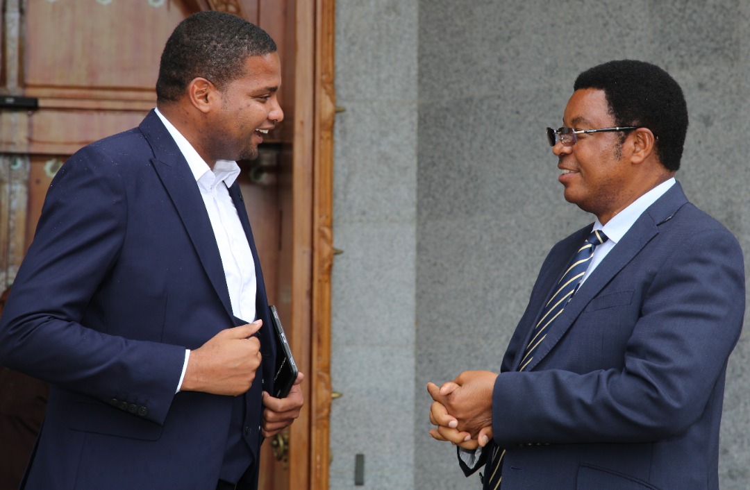 Waziri Mkuu, Kassim Majaliwa akizungumza na Naibu Waziri wa Mambo ya Ndani ya Nchi, Hamad Yusuf Masauni (kushoto) na Mbunge wa Manonga, Seif Khamis Gulamali Bungeni jijini Dodoma, Januari 28, 2020. (Picha na Ofisi ya Waziri Mkuu)
