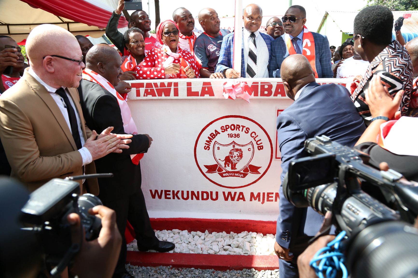 Mtendaji Mkuu wa klabu ya Simba Bw. Senzo Mbatha,akizungumza na wabunge wananchama,washabiki na wapenzi wa timu ya Simba wakati wa uzundua wa tawi jipya la kisasa la ‘WEKUNDU WA MJENGONI”nje ya lango kuu la kuingia Bungeni tukio lililofanyika leo Jijini Dodoma