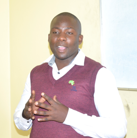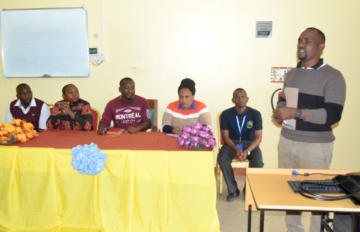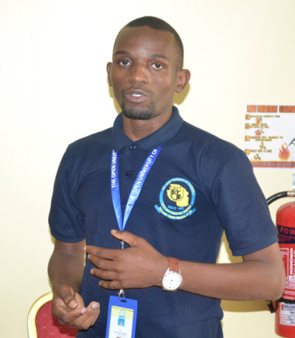 Rais wa Umoja wa Wafugaji Nyuki Nchini, Philemon Kiemi, akizungumza na viongozi wa serikali ya wanafunzi na Jumuiya ya Chuo Kikuu Huria cha Tanzania tawi la Singida jana.